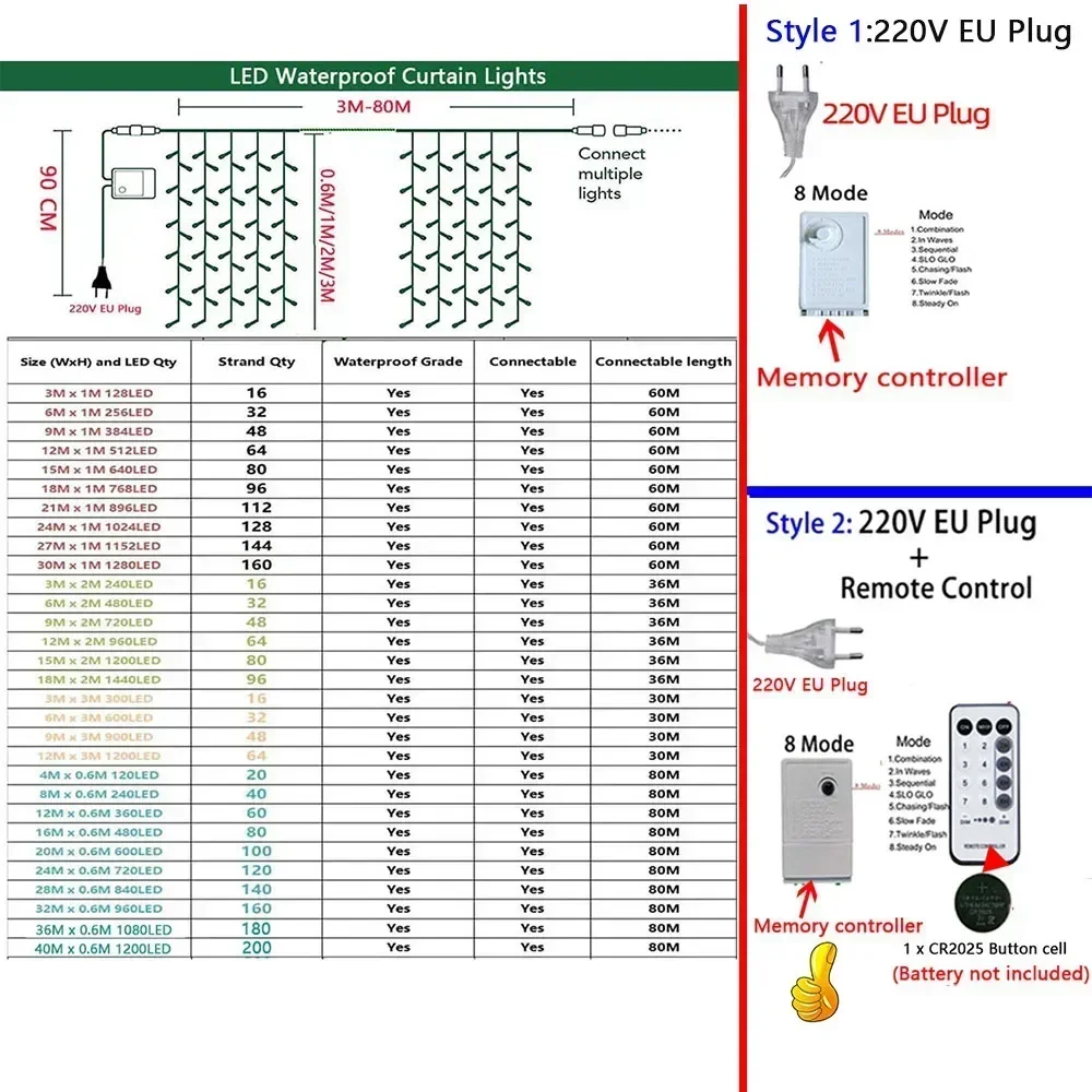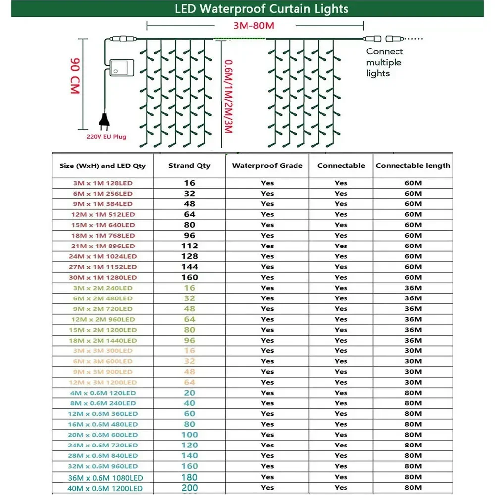 Características: LED Icicle Ice strip waterfall Light